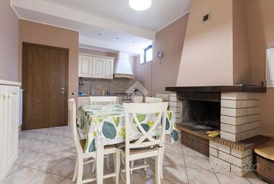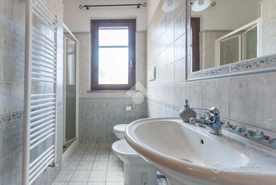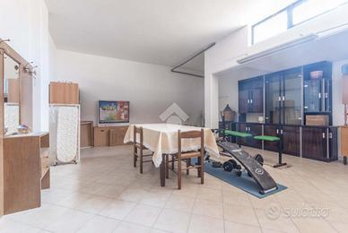 Tramite una scala interna si accede al piano seminterrato dove troviamo una taverna di grande metratura con soggiorno con angolo cottura, disimpegno, camera matrimoniale, bagno finestrato con doccia e un garage di 80 mq.