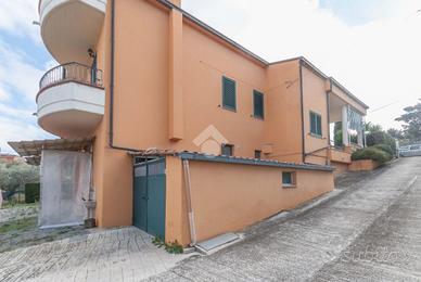 Questa soluzione si compone al piano terra di un ingresso su un ampio soggiorno con camino, una comoda cucina abitale e un disimpegno che porta alla zona notte dove troviamo tre grandi camere matrimoniale, due delle quali con balcone vista mare e due bagni, uno finestrato con doccia mentre l'altro finestrato con vasca.