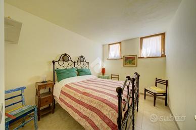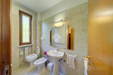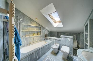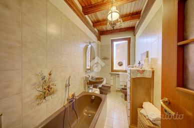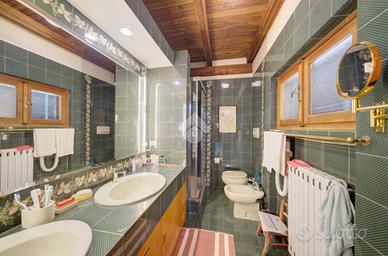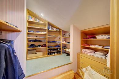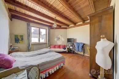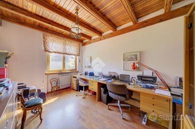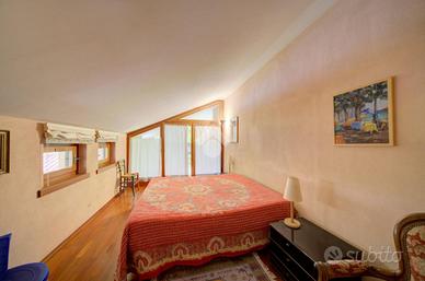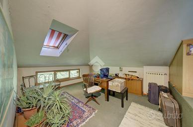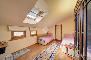 Tramite scala interna accediamo al primo piano mansardato, presenti altre tre camere da letto (una di esse dotata di cabina armadi), il bagno con vasca, e un altro accesso al soppalco sulla zona giorno.