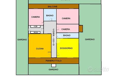 Costruita nel 1992, questa proprietà offre spazi ben distribuiti e di giuste dimensioni. L'immobile dispone di un'ampia e confortevole cucina, soggiorno luminoso che affacia sul giardino antistante del fabbricato, un bagno di servizio fornito da box doccia e altro bagno patronale servito da vasca. Le tre camere da letto costituiscono la zona notte e la scala interna è una comodità per raggiungere il piano seminterrato caratterizzato da un deposito, una cantina e un box auto doppio.