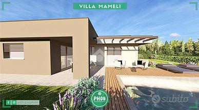 Progetto per signorile villa singola a piano terra, composta da porticato d'ingresso che le dona importanza, ampia zona giorno in open space con grandi vetrate verso il portico (con possibilità di piscina) e giardino dove mangiare o prendere il sole, due camere da letto, due bagni e garage comunicante e posto auto coperto. L'abitazione verrà realizzata seguendo tutte le più moderne tecnologie costruttive come riscaldamento a pavimento in pompa di calore e condizionamento idroponico, impianto fotovoltaico, isolamento acustico, cappotto termico, serramenti al alta efficienza con microventilazione e ampie pobbilità di scelte di finiture extra capitolato!