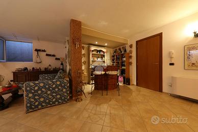 Al piano semi-interrato troviamo invece la stupenda taverna di circa 80 mq con angolo bar e zona cucina, che offre uno spazio sia di svago sia per pranzi/cene famigliari o con amici. Abbiamo poi altri due comodi locali usati come ripostiglio, un altro bagno/lavanderia con doccia e per finire il box auto triplo.