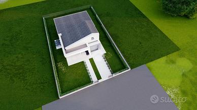 La villa al suo interno e' composta da zona giorno ampia con cucina a vista (volendo si puo' separare dal soggiorno, disimpegno, 2 camere matrimoniali e bagno/lavanderia. Garage collegato all'abitazione. C'è la possibilità di realizzare un soppalco che si affaccia sulla zona giorno dove e' possibile ricavare una stazia o studio. E' possibile inoltre anche apportare modifiche al progetto secondo le proprie esigenze. Cappotto esterno, impianto fotovoltaico, basculante elettrica, pompa di calore.