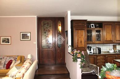 Ampia zona living collegata al portico esterno con salone, cucina abitabile con predisposizione stufa a legna, zona notte completa di camera matrimoniale con bagno privato, ulteriore camera matrimoniale e singola oltre al bagno.