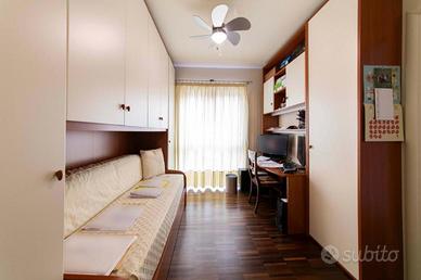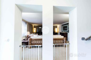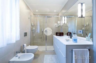 A completare il livello, troviamo un secondo bagno di servizio, elegante e ben rifinito con materiali di pregio, una funzionale zona lavanderia e una camera singola con cabina armadio. Al piano superiore si trovano altre due ampie camere da letto, un bagno finestrato con box doccia e doppio lavabo, oltre ad un como