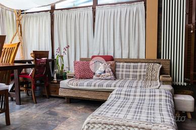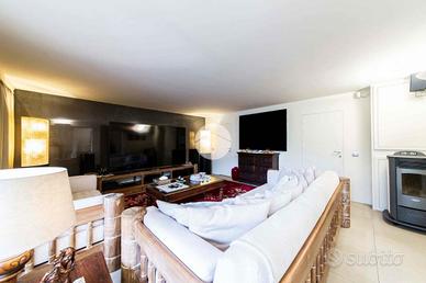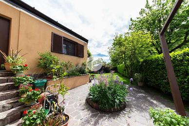 L'ingresso conduce al piano terra dove troviamo una luminosa zona giorno con la presenza di due ripostigli. Una raffinata scala in marmo conduce al piano superiore, dove troviamo una moderna cucina in stile americano con isola centrale, caratterizzata da due ampie porte finestre che si affacciano sull'elegante veranda. Quest'ultima, grazie alle generose dimensioni, offre molteplici possibilità di arredo, rendendola uno spazio ideale da vivere in ogni stagione, inoltre dà accesso allo splendido giardino privato, che si sviluppa su tre lati della proprietà, regalando un'oasi di tranquillità e riservatezza. Proseguendo, si accede alla zona notte, composta da una spaziosa camera padronale con bagno en-suitè finestrato, dotato sia di vasca che di box doccia.