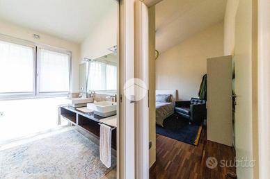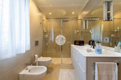 A completare il livello, troviamo un secondo bagno di servizio, elegante e ben rifinito con materiali di pregio, una funzionale zona lavanderia e una camera singola con cabina armadio. Al piano superiore si trovano altre due ampie camere da letto, un bagno finestrato con box doccia e doppio lavabo, oltre ad un como