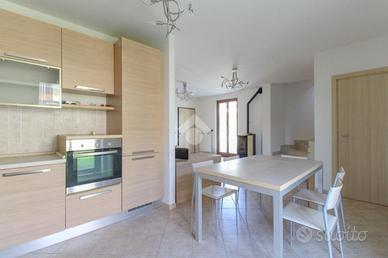 L'immobile é dotato di cappotto esterno, infissi in legno a doppio vetro, predisposizione per impianto di allarme e canna fumaria per chi volesse installare una stufa a pellet. Peculiarità dell'immobile sono sicuramente la presenza di un bagno per ciascun piano e il giardino di 220 metri quadrati circa.