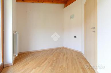Il piano primo si compone di: bagno principale con vasca, camera padronale matrimoniale, camera singola e studio. Le due camere hanno accesso a balconcino privato. L'intero piano é pavimentato in parquet di legno chiaro con posa a spina di pesce.