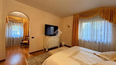 Varcando l'ingresso al piano terra, si viene accolti da ambienti eleganti e armoniosi: uno studio riservato, una sala da pranzo di rappresentanza e un soggiorno con camino, ideale per accogliere gli ospiti in un'atmosfera calda e raffinata. Accanto a questi spazi, un secondo soggiorno privato conduce alla sala da pranzo di tutti i giorni, affiancata da una cucina separata che si apre su uno splendido portico verandato con ampie vetrate, perfetto per vivere la casa in ogni stagione. Tutti gli ambienti del piano dialogano direttamente con il giardino, un'oasi verde che, nonostante la posizione centralissima, garantisce momenti di assoluta quiete e piacevoli serate all'aperto.