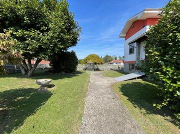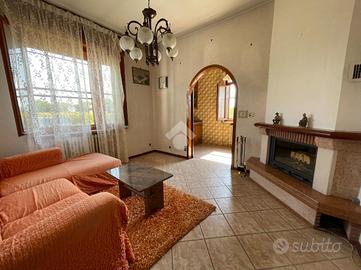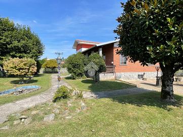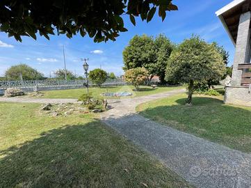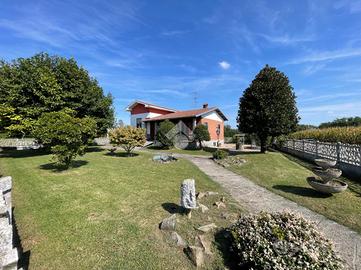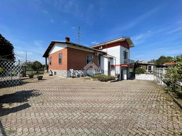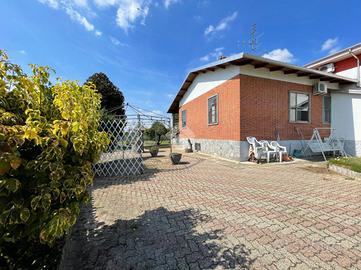 VILLA SINGOLA LIBERA SU 4 LATI A SALUGGIA, CON PIANO ABITATIVO SU UN UNICO LIVELLO. Posizione ottimale nel paese di Saluggia, perfetta per godere della comodità del centro raggiungibile anche a piedi in pochi minuti, servito da ogni tipo di attività commerciale e anche per una tranquilla vita di campagna immersa nel verde. La libertà su tutti e quattro i lati e la distanza di molti metri dalle altre abitazioni favorisce privacy e tranquillità, come anche molta luminosità sia alla parte esterna che a quella interna dell'abitazione. L'immobile si presta per essere vissuto da ogni tipo di famiglia: per gli amanti del verde o degli animali grazie all'ampio giardino e al terreno adiacente al retro dell'abitazione, a persone con difficoltà di deambulazione essendo il piano abitativo su un unico livello con pochi gradini e anche a pendolari grazie alla vicinanza alla stazione ferroviaria o in macchina alle città come Chivasso e Torino. L'accesso alla villa è diviso in due: quello pedonale fronte strada, più arretrato rispetto alla carreggiata per una maggiore sicurezza e con possibilità di comodo parcheggio e l'ingresso carraio laterale che crea la possibilità anche di dividere tramite recinzione gli stessi per una maggiore sicurezza. Tramite il portico coperto, che permette pranzi e cene all'aperto nella bella stagione, si accede all'interno con ampio ingresso che divide la zona notte dalla zona giorno, composta da soggiorno doppio molto luminoso grazie alle ampie vetrate e con accesso al portico coperto, cucinino con tinello reso accogliente dal camino a legna e climatizzato. La zona notte rimane leggermente più rialzata ed è divisa in: camera da letto matrimoniale con accesso al balcone privato con vista sul terreno, cameretta e antibagno, entrambi con accesso al balcone verandato, con bagno finestrato con doccia. Tramite scala interna si raggiungono al piano seminterrato i locali di servizio come l'ampio box auto con basculante sezionale automatizzata di recente