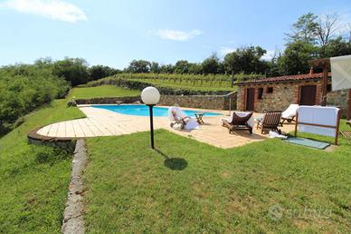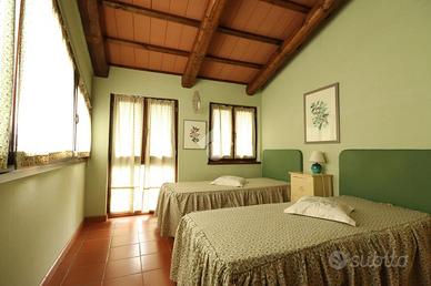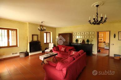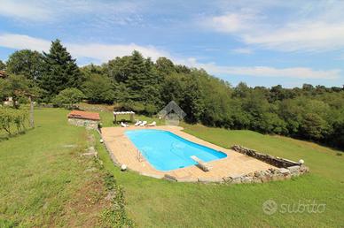 Questa villa, immersa nel verde dei boschi tra cui si districano i sentieri biellesi, è corredata da un parco privato e da terreni boschivi con ruscello per complessivi 170.000 mq circa. La proprietà negli anni è stata oggetto di diversi interventi di ampliamento e ristrutturazione in chiave rustica, mantenendo il più possibile le finiture tipiche delle case di campagna piemontesi, senza però rinunciare al comfort. Il parco, che si estende quasi interamente a sud dell'abitazione, è caratterizzato dalla presenza di una piscina con annessi locali tecnici, spogliatoi e due bagni, da un vigneto e da un porticato attrezzato con ampia area barbecue e forno. Il fabbricato, interamente costruito in pietra e mattoni ristrutturato nel 2008/2009, si eleva a tre piani fuori terra ed è dotato anche di un piano interrato. Il piano terra ospita la zona giorno, costituita da un ampio soggiorno con accesso dal porticato, cucina abitabile con dispensa e da una seconda stanza, utilizzabile come sala lettura o secondo soggiorno. Ogni piano è dotato di servizi completi. Al piano primo la zona notte, che conta 5 camere da letto, ciascuna disimpegnata in maniera ottimale, due bagni e una zona comune. Il piano superiore, originariamente sottotetto, è stato ulteriormente ristrutturato per espandere la zona abitativa, e in particolar modo da qui è possibile godere della vista panoramica sia verso il parco della proprietà che verso l'arco alpino che svetta a nord di Biella. Il piano interrato invece è costituito da un ricovero attrezzi molto capiente accessibile anche con i mezzi, da alcuni vani tecnici e da una cantina con volte in mattoni e pavimento in battuto. Il riscaldamento è dato dalla caldaia a condensazione a GPL collegata con i termosifoni e ulteriore caldaia a legna collegata allo stesso impianto. Quest'ultimo ha un interscambio automatico da GPL a legna e viceversa. Inoltre, ..