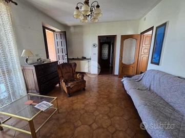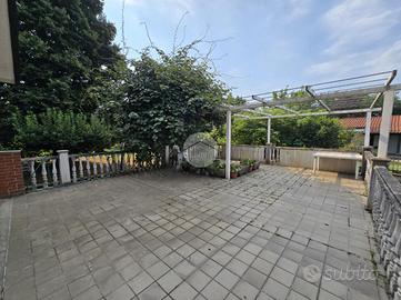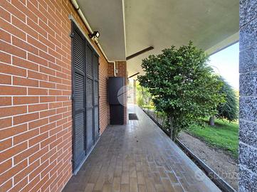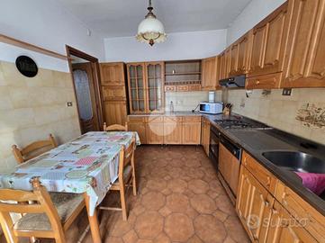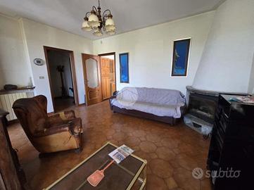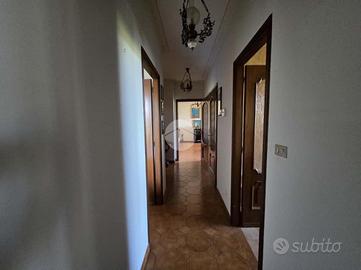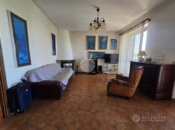 L'ingresso si apre su un soggiorno di generose dimensioni, reso accogliente dalla presenza di un camino e arricchito da una porta finestra che conduce direttamente al portico, ideale per momenti di relax all'aperto. La cucina, ampia e abitabile, è anch'essa dotata di porta finestra con accesso diretto al grande terrazzo, perfetto per pranzi e cene in compagnia.