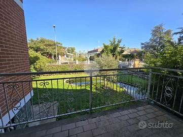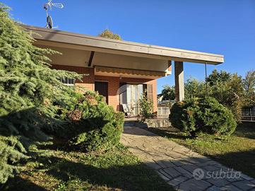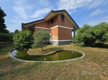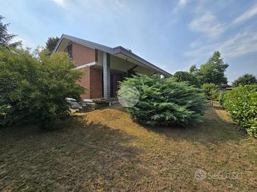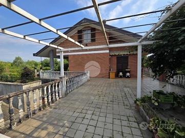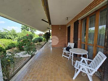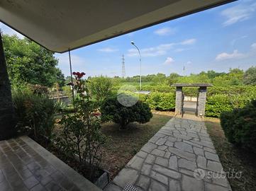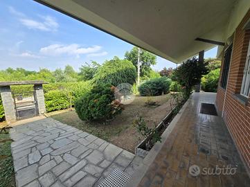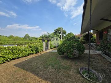 Questa elegante villa unifamiliare, rifinita in paramano sabbiato e circondata da un curato giardino, offre ampi spazi interni ed esterni pensati per garantire comfort e funzionalità.