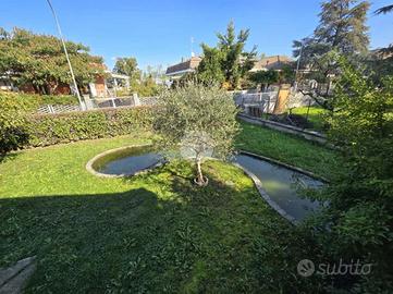 All'esterno, la proprietà è impreziosita da un portico, un ampio terrazzo, un giardino con laghetto ornamentale e una comoda area di manovra che facilita l'accesso ai garage.
