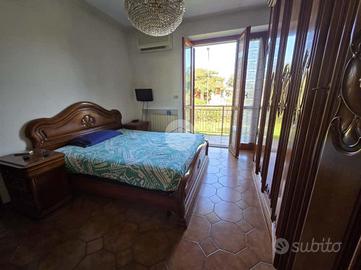 La zona notte è ben disimpegnata e comprende due camere matrimoniali: la prima dispone di condizionatore e balcone privato, mentre la seconda, attualmente adibita a salone, gode di una luminosa porta finestra. A completare il piano troviamo un bagno padronale con vasca e un bagno di servizio con doccia.