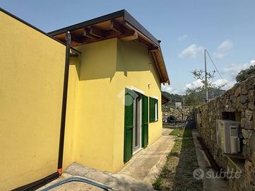 La parte abitativa è disposta su un unico livello, con il soggiorno, la cucina, le due camere, il bagno principale ed un locale wc. Al piano inferiore un ampio box auto di 36mq.
