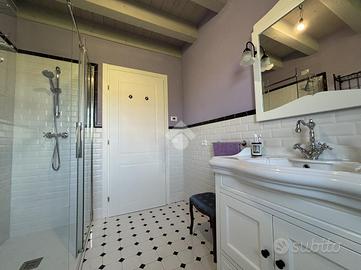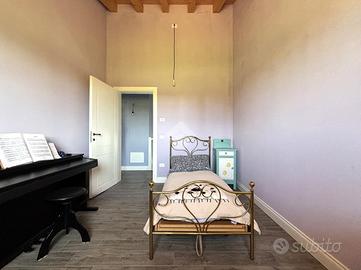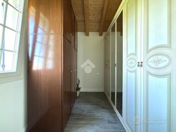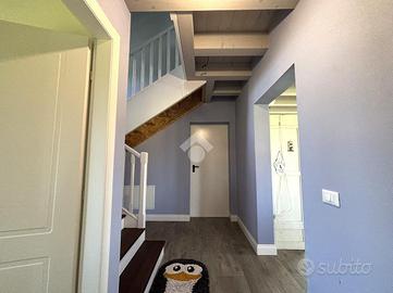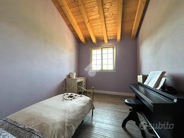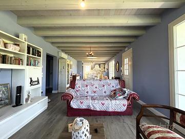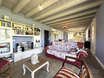 Gli interni sono valorizzati da ampie vetrate e travi a vista, che donano luce naturale e charme a ogni ambiente. La costruzione in bioedilizia assicura risparmio energetico e salubrità.