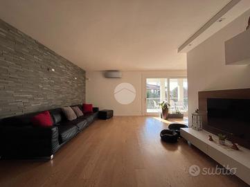 L'Immobiliare Tecnorete di Silea propone villa singola sviluppata su un unico livello fuori terra, più uno semi interrato per un totale di circa 385 mq commerciali, situata in zona centrale di Olmi di San Biagio di Callalta. L'immobile nasce negli anni '90 ed è stato completamente ristrutturato nel 2011 nelle finiture, impianti, tetto e cappotto, dispone inoltre di giardino di circa 700 mq disposto su quattro lati. Al piano rialzato si sviluppa la zona abitabile e ci accoglie con un ampio ingresso, soggiorno di circa 6o mq, cucina separata ed abitabile. Dalla zona giorno è possibile accedere alla terrazza abitabile, di circa 30 mq, ideale per pranzi e cene all'aperto. Tramite disimpegno in soggiorno si accede alla zona notte dove sono presenti tre camere da letto matrimoniali, di cui una patronale con cabina armadio e bagno privato finestrato con box doccia, un ripostiglio ed un secondo bagno finestrato con box doccia e vasca. Attraverso la scala interna si accede al piano semi interrato dove troviamo un ampio spazio open space di circa 85 mq, dedicato a taverna con camino a legna centrale, cucina separata, bagno finestrato con box doccia, due ampi magazzini e centrale termica. Quest'ultima parte è trasformabile in uno studio o in una seconda abitazione, grazie alle sue generose metrature e alla possibilità di accedervi in maniera diretta ed indipendente dal giardino esterno. I serramenti interni sono in legno con doppio vetrocamera e zanzariere, mentre quelli esterni sono scuri in legno. La pavimentazione dell'intera abitazione è in rovere naturalizzato, ad eccezione dei bagni e del piano semi interrato, i quali sono in piastrelle. Il riscaldamento è a radiatori e la caldaia è stata sostituita nel 2024. Presenza inoltre di allarme perimetrale e volumetrico e pompa di calore in zona giorno. La soluzione immobiliare è inserita in contesto residenziale di sole ville ed è comoda a tutti i principali servizi come scuole, farmacia, banca e centri commerciali.
