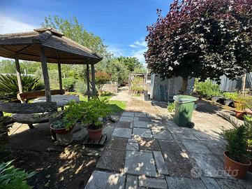 In un'ottima posizione perchè vicina al casello autostradale di San Cesareo e al centro del paese, vi proponiamo una villa singola di 90 mq disposta unicamente su un livello. La proprietà, che si estende su un lotto di 2.240 mq complessivi, ci accoglie con un lungo viale mattonato incorniciato da un curato giardino che prosegue oltre l'abitazione, dove i protagosti sono i numerosi alberi da frutta e di olivo. La villa, internamente, è composta da un'ampia zona giorno caratterizzata da un doppio salone, cucina abitabile con uscita sul portico e quindi sul giardino, una camera matrimoniale ed il rifinito bagno. Le sue dimensioni però vi consintiranno di poter ricavare almeno un'altra camera!