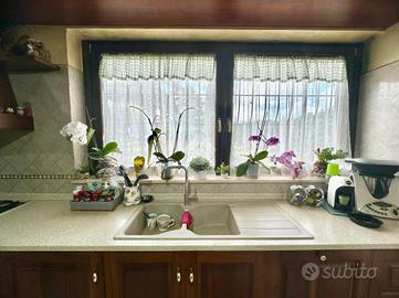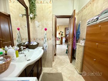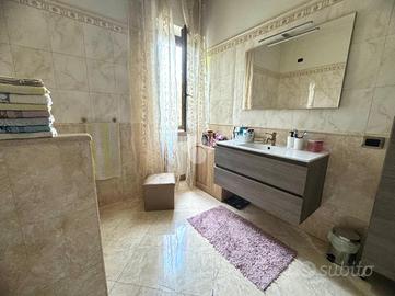 Il pavimento in marmo lucido attraversa tutta l'area living, conferendo eleganza e luminosità agli spazi che si compongono di un salone doppio, accogliente e ideale per il relax o la convivialità e una cucina a vista, con camino, perfettamente integrata con il soggiorno per un effetto open-space raffinato e funzionale. La zona notte è separata da un comodo disimpegno con armadi a muro (una soluzione d'arredo estremamente pratica e raffinata, pensata per ottimizzare gli spazi senza rinunciare all'estetica) ed è caratterizzata da un'atmosfera calda e accogliente, grazie alla pavimentazione in parquet di alta qualità e comprende tre camere da letto di cui due matrimoniali ed una completa di cabina armadio e due bagni finestrati, entrambi con pavimentazione e rivestimenti in marmo, uno dotato di vasca e l'altro di una spaziosa doccia, entrambi curati nei dettagli; Attraverso una comoda scala interna si accede al primo piano, che ospita un secondo appartamento, totalmente indipendente nella distribuzione degli spazi, perfetto per una seconda famiglia. L'abitazione necessita di lavori di ristrutturazione e all'interno è composta da un'ampia zona giorno con camino, tre camere ed il bagno.
