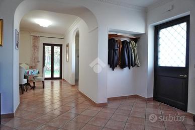 Immersa nel verde, tra le colline, in posizione dominante e riservata, questa splendida villa indipendente di circa 270 mq offre comfort, spazi generosi e un panorama mozzafiato sulla Capitale. Completamente ristrutturata nel 2021 grazie al Superbonus, l'abitazione coniuga eleganza e sostenibilità. Gli interventi hanno interessato ogni aspetto dell'immobile: sono stati installati una caldaia a condensazione, una pompa di calore e pannelli fotovoltaici per una gestione efficiente dei consumi energetici; al piano terra si sviluppa una zona giorno ampia e luminosa, con un grande salone ideale per accogliere ospiti, una raffinata sala da pranzo e un cucinotto funzionale; proseguendo troviamo una camera matrimoniale e un bagno ben rifinito. Il sottoscala, sapientemente sfruttato come dispensa, aggiunge praticità agli spazi. Salendo al piano superiore si accede alla zona notte, composta da quattro spaziose camere matrimoniali, un bagno e due balconi che si affacciano sul paesaggio circostante, offrendo una vista incantevole su Roma e sui colli verdi che la circondano.