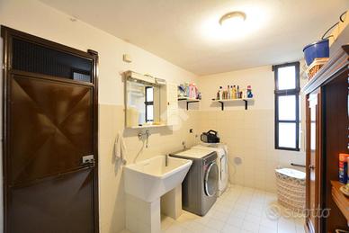 Al piano terra troviamo l'ampio soggiorno, la cucina abitabile, una camera da letto, ideale anche come studio, un bagno di servizio, un locale lavanderia e un ripostiglio/cantina.
