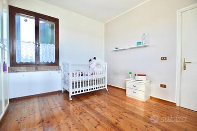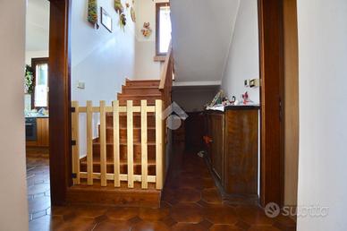 San Donà di Piave, in zona Chiesanuova, in posizione tranquilla e immersa nel verde, proponiamo in vendita villa singola sviluppata su due livelli.