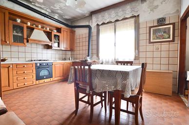 La proprietà, sviluppata su due comodi livelli, offre ampi spazi e una notevole luminosità in tutte le stanze. Al piano terra, l'ingresso accoglie un ampio disimpegno che collega il luminoso soggiorno, perfetto per vivere momenti di relax, alla cucina separata con stufa a legna, ideale per chi ama cucinare in modo pratico e funzionale. Completano il piano un bagno con doccia, un ampio magazzino, ideale per riporre attrezzi e oggetti, e un garage spazioso che offre la comodità di parcheggiare comodamente l'auto e avere ulteriore spazio di deposito.