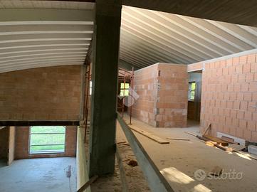 attraverso la scala si giunge al piano primo che prevede una camera matrimoniale con bagno padronale, un vano guardaroba, un'altra camera matrimoniale, bagno ed una zona soppalco che si affaccia sul piano terra.
