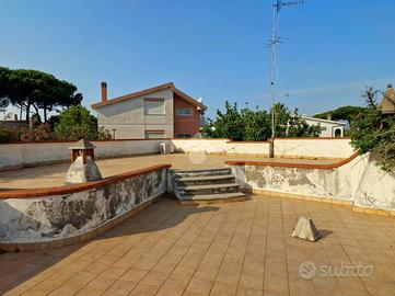Una scala esterna conduce al terrazzo superiore, ampio e vivibile: uno spazio che può diventare una vera oasi privata, perfetta per prendere il sole o per organizzare cene estive con amici e famiglia, con la riservatezza tipica di una villa singola.