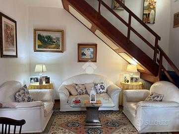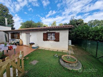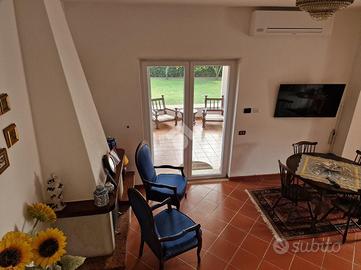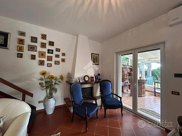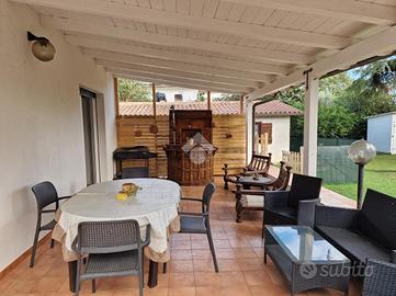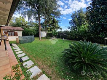 Collocata in Via della Pineta, questa raffinata proprietà si trova all'interno di un Residence privato, che garantisce un ambiente tranquillo e riservato. La posizione permette di raggiungere comodamente il centro e le spiagge in pochi minuti di auto. La villa si sviluppa su due livelli. Al piano terra, l'ingresso conduce a un accogliente e luminoso soggiorno dotato di camino. Il salone si apre su un ampio patio coperto, accessibile tramite una porta-finestra. Sullo stesso piano si trovano una cucina abitabile, una camera da letto versatile che può essere utilizzata anche come studio o camera per gli ospiti, e un bagno con doccia. Il piano superiore ospita due ampie camere da letto ed un bagno elegante con vasca. Gli spazi esterni al livello superiore includono un terrazzino ed un balcone, perfetti per momenti di relax e per godere della tranquillità del contesto circostante. Il giardino privato, che si estende per circa 500 mq, è un vero angolo di paradiso. Troviamo anche una dependance indipendente composta da un soggiorno con angolo cottura, dotato di camino, una camera da letto e un bagno. Completa l'esterno un magazzino perfetto per il deposito di attrezzi o materiali da giardinaggio. La proprietà è stata recentemente sottoposta ad una riqualificazione energetica grazie al Superbonus 110. Sono stati installati pannelli fotovoltaici per la produzione di energia elettrica, nuovi infissi e una caldaia ibrida. Inoltre, la proprietà dispone di una colonnina per la ricarica di auto elettriche. Il sistema di climatizzazione caldo/freddo, basato su pompa di calore, garantisce un'elevata efficienza energetica e un comfort ottimale in ogni stagione. Questa villa rappresenta una sintesi perfetta di stile e funzionalità. Contattaci subito per prenotare una visita!