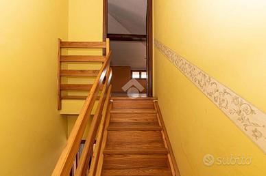 L'ingresso, tramite il portoncino, è sul disimpegno che conduce al soggiorno doppio. La cucina è abitabile e il bagno ha la vasca con doppio lavandino. Le due camere da letto sono luminose e di generose dimensioni e hanno l'affaccio sui balconi. Tramite scala interna, si accede al piano sottotetto rifinito con vani e servizi.