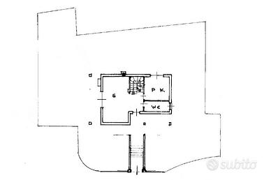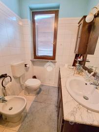 L'ingresso al piano terra, tramite il portoncino blindato, è sul disimpegno che conduce al soggiorno e alla cucina abitabile. Il bagno ha la vasca.