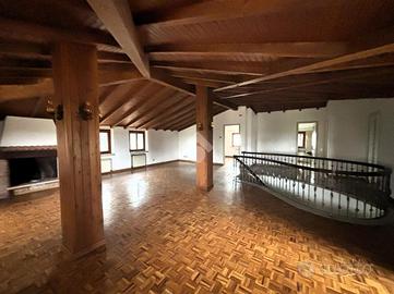 Il primo piano è interamente mansardato e suddiviso in salone con camino, tre camere da letto, un servizio con box doccia, balcone.
