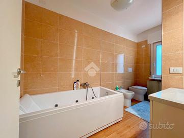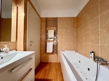 All'interno, gli ambienti sono caldi e ben distribuiti: tutto il pavimento è in legno di bambù, che dona uniformità e un tocco naturale a ogni spazio. La zona giorno è composta da un soggiorno luminoso e da una cucina abitabile, mentre la zona notte offre una camera matrimoniale con bagno privato finestrato e doccia, una seconda camera singola e un secondo bagno, anch'esso finestrato, dotato di vasca idromassaggio.