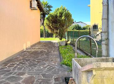 L'ingresso principale si affaccia su un giardino frontale di circa 90 mq, mentre sul retro si apre un'area verde più ampia, di circa 185 mq, perfetta per godersi il tempo all'aperto in una posizione più riservata.
