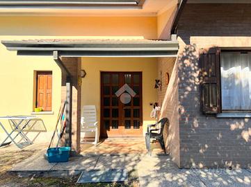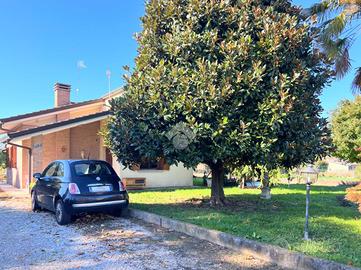 In una zona residenziale tranquilla, proponiamo in vendita una villa indipendente disposta interamente su un unico piano terra, con giardino privato fronte e retro.