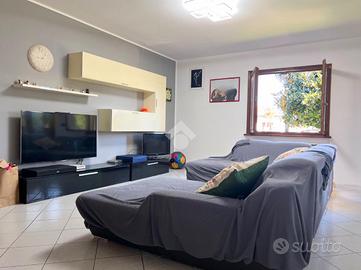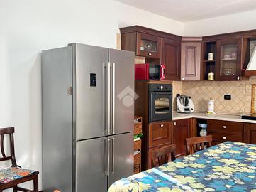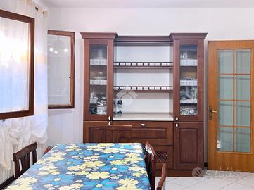 Zona giorno luminosa, composta da una cucina attrezzata e da un ampio soggiorno di circa 24 mq, in cui è presente una porta-finestra che si apre su un portico esterno ideale per pranzi e momenti di relax all'aperto.