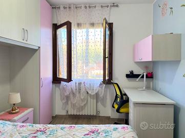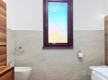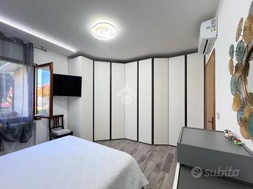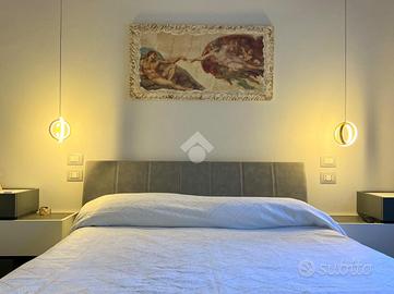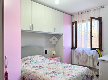 Un disimpegno in cui è posizonata una stufa a pellet conduce alla zona notte, composta da tre camere da letto ristrutturate nel 2023 e arredate con mobili di pregio, oltre a due bagni finestrati completamente rinnovati nello stesso anno: uno con vasca idromassaggio, l'altro con doccia.