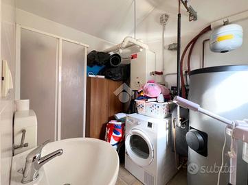 All'esterno con accesso indipendente, si trovano un terzo bagno, una sala termica, un ripostiglio e un garage coperto.