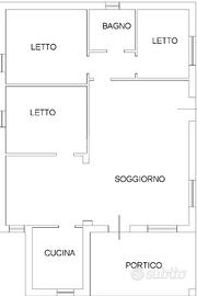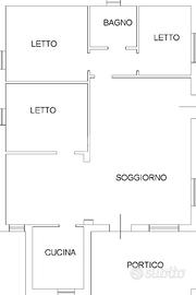 La proprietà si sviluppa interamente al piano terra, offrendo un comodo accesso a tutti gli ambienti. La disposizione interna è studiata per garantire funzionalità e comfort, con ambienti luminosi e ben distribuiti. L'ampio soggiorno, valorizzato dal camino, e la cucina, abitabile, formano la zona giorno. Tre camere da letto matrimoniali ed il bagno completano la proprietà.