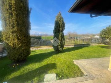San Giusto Canavese: in zona residenziale e tranquilla proponiamo una villa singola di 140 mq, costruita nei primi anni 2000. Questa residenza signorile si sviluppa su un unico livello, offrendo un ambiente accogliente e funzionale. L'immobile è composto da quattro locali ben distribuiti, ideali per chi cerca spazi ampi e luminosi. La disposizione interna è studiata per garantire comfort e praticità, con una zona giorno che si apre su un giardino privato, perfetto per momenti di relax all'aperto. La villa è situata in una posizione comoda ai principali servizi del comune. La qualità dei materiali e le finiture curate rendono questa proprietà una soluzione abitativa di pregio. Perfetta per chi desidera vivere in un contesto riservato, senza rinunciare alla vicinanza con le comodità cittadine. La villa insiste in un giardino privato di circa 1700mq dove una parte si può destinare a orto; vi sono inoltre alberi piantumati che rendono l'esterno molto gradevole. Il pozzo artesiano permette l'irrigazione del giardino che è inoltre automatica. Il portoncino di accesso è blindato con le inferriate alle finestre e le zanzariere in tutte le porte/finestre. Gli infissi in doppio vetro sono in PVC corredati dalle tapparelle elettriche. Il cancello automatico permette la comodità di accesso al box auto. . La caldaia a condensazione è stata sostituita da poco ed al piano interrato nel locale uso tavernetta è presente una stufa a pellet. Vi è inoltre la presenza nella zona giorno di un camino a legna. Tutto l'immobile è circondato da antifurto perimetrale e volumetrico.