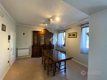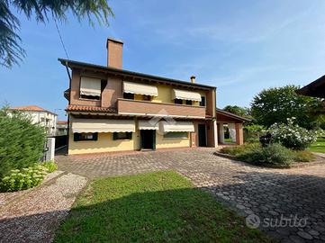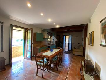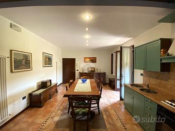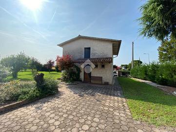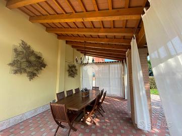 Proponiamo in vendita una prestigiosa villa singola situata in prossimità del centro del paese, su un ampio lotto di 1.720 metri quadrati. Questa residenza, ristrutturata interamente nel 2005, rappresenta una soluzione abitativa di grande importanza. L'immobile si sviluppa su due piani ben distinti. Al piano terra, la porta di ingresso ci conduce su un pratico disimpegno dove sulla sinistra troviamo una camera matrimoniale e separatamente una sala da pranzo con angolo cottura. Proseguendo troviamo un funzionale bagno - lavanderia e sulla destra del disimpegno si apre una spaziosa taverna con cucina, servita da un camino, ideale per cene in compagnia e momenti di svago. Una bella scala in marmo ci porta al primo piano, dove si apre una splendida cucina con salotto open space, caratterizzata da travi a vista e una stufa a legna. L'illuminazione ad incasso aggiunge contemporaneità e funzionalità mentre la pavimentazione, caratterizzata da vari tipi di cotto fiorentino, aggiunge un tocco di eleganza e tradizione. Le ampie finestre, invece, illuminano l'ambiente e conducono a due poggioli, uno dei quali è dotato di un ulteriore camino. Una porta scorrevole conduce in zona notte, dove troviamo due camere matrimoniali e una camera singola. A completare il piano si trova un bagno con vasca. Inoltre, la proprietà dispone di un suggestivo porticato perfetto per trascorrere piacevoli occasioni all'aperto e per godere di relax e convivialità. La proprietà, oltre all'ampio giardino piantumato, include anche un ulteriore fabbricato che ospita un garage doppio e tre utili locali adibiti a ripostiglio, oltre a un ampio spazio esterno che arricchisce ulteriormente l'abitazione. Questa soluzione è ideale per chi cerca ampi spazi, comodità ai principali servizi del paese, combinando in modo armonioso classe e modernità.