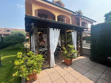 Il giardino privato circonda l'intero immobile ed è dotato di punto acqua potabile, corrente e pozzo privato collegato all'impianto d'irrigazione automatico.