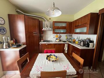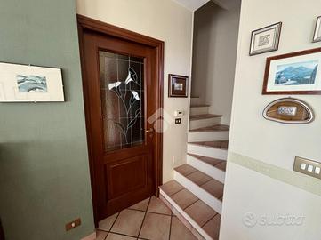 L'ingresso, tramite il portoncino blindato, è sul soggiorno adibito anche a sala da pranzo. Sempre al piano terra, sono presenti la cucina abitabile e il bagno di servizio.
