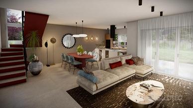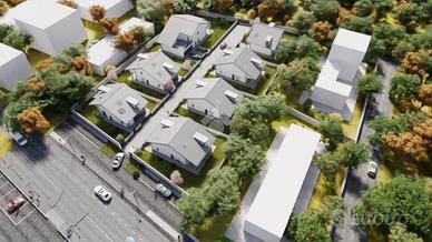 Nuovo Complesso residenziale distribuito all'interno di un'area privata completamente recintata dove sorgeranno 7 VILLE SINGOLE con giardino di proprietà esclusiva. Le medesime verranno realizzate secondo le ultime novità CASA CLIMA, ossia case dotate di pannelli fotovoltaici, impianto VMC (deumidificazione e scambiatore d'aria) e accumulatore d'acqua calda, il tutto collegato ai pannelli fotovoltaici, con impianto di riscaldamento/raffrescamento a pavimento. Le ville saranno disposte su due piani abitativi, con autorimessa adiacente. CLASSE ENERGETICA A4. Ogni villa verrà realizzata in base alle disposizioni dell'acquirente che potrà decidere come ripartire gli spazi interni, il tipo e le dimensioni dei serramenti (compatibilmente con le norme), il numero di camere e di bagni. Piano terra: box auto di circa 30 mq con serranda sezionale coibentata, ingresso su salone open-space con angolo cucina a vista, disimpegno e bagno. Piano primo mansardato abitabile: 4 camere da letto e secondo bagno. L'immobile sarà recintato con accesso privato carrabile e pedonale indipendente.
