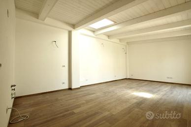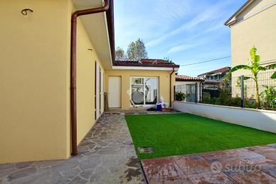 Entrando nell'abitazione veniamo accolti dalla luminosa zona giorno open space di circa 35 mq con un'ampia porta finestra che affaccia sul giardino.