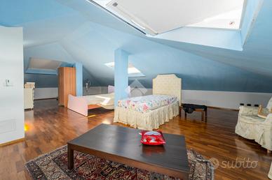Completa la soluzione il piano mansardato, dalle altezze vivibili, dove troviamo un ambiente di 75 mq utilizzabile come camera da letto/sala hobby, un bagno con ampio box doccia ed un ripostiglio di 18 mq.