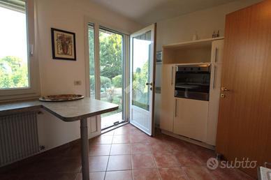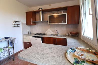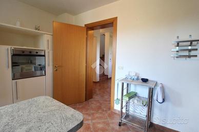 Nella seconda porzione invece, Subito dopo l'ingresso, sulla sinistra, troviamo un locale soggiorno, mentre, sulla destra, è presente la sala da pranzo che ospita anche la cucina e il bagno.